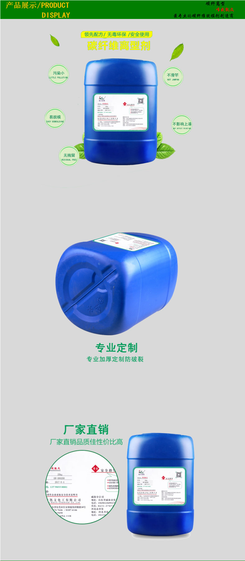 KW-089200离型剂(脱模剂)是一种碳纤维复材离型剂;与同类产品比具有脱模力小、表面细腻、质量稳定等优点;KW-089200离型剂(脱模剂)适用于各种碳纤维复合卷管制杆制品如(碳纤维钓渔竿、高尔夫球杆、摄影三脚支架、碳纤维管材)的脱模。